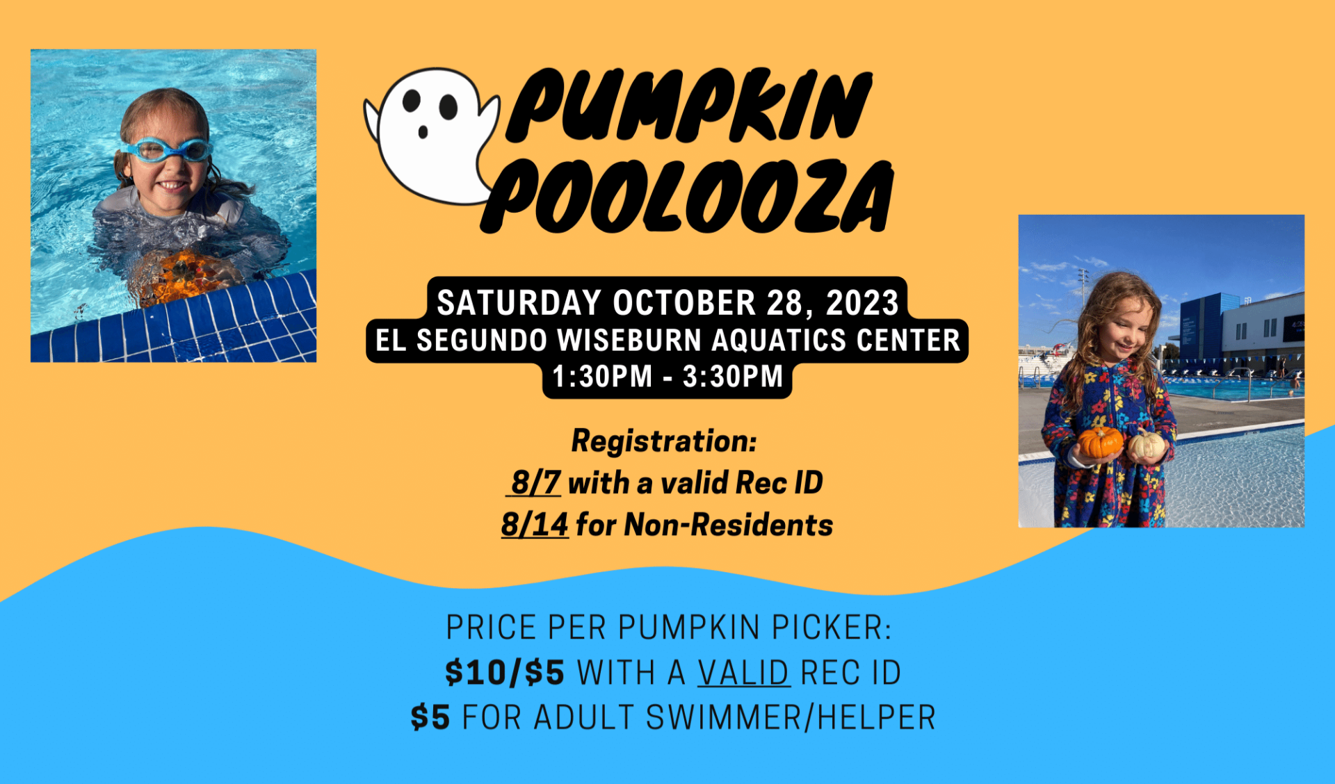 Take a plunge in our floating pumpkin patch! Our annual Pumpkin Pool-ooza will be on Saturday, October 28th from 1:30 p.m. - 3:30 p.m. at the Aquatics Center. Come for the pumpkin pickin', stay for the pumpkin decorating, games raffles, and frightening good time!